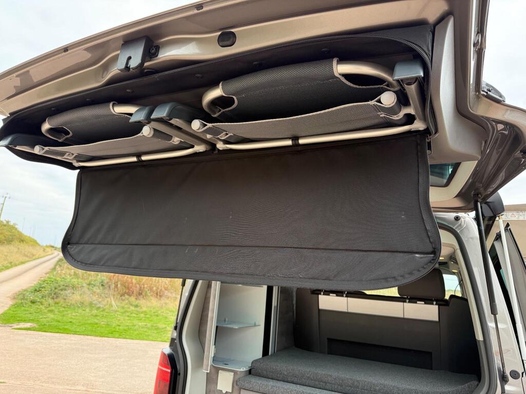 FVWSH, Manufactures Warranty to 26/01/2026, Service Plan to 26/01/2029, 204 BHP, Radar Cruise Control, Lane Change Assist, Navigation System Discover Media Pro including Streaming and Internet, Reverse Camera, Tyre Pressure Monitoring System - Direct Measurement, Bed Extension with Comfort Sleeping Mat, Roof Bellows - Glacier Blue, Mud Flaps - Front and Rear, 17in Alloy Wheels - 7J Woodstock - Black Diamond Turned, Cupboards in Graphite Grey - Slate Effect with Outdoor Shower Connection, Circuit Cloth - Palladium, Inlays - Bright Brushed Grey, Lockable Storage Compartment, Towbar - Removable and Lockable with Trailer Stabilisation, 1 Waste Bin in Door Storage Compartment in Cab, 17in Alloy Wheels - 7J Aracaju - Silver, 17in Brake System Front - 16in in Rear, 230V External Inlet with Charging Feature for Vehicle Batteries and Internal 230V Outlet on the Side of the Kitchen Unit, 230V Inverter with Socket on Drivers Seat, ABS - Anti-Lock Braking System, ASR - Anti Slip Regulation, Adaptive Cruise Control ACC including Front Assist and City Emergency Braking, Air Conditioning - 3-Zone Climatronic with 2nd Evaporator-Auxiliary Heater-Air Conditioned Headliner and Additional Passenger Control, Allergen Filter, Anti-Theft Alarm System with Interior Monitoring in Cab - Backup Horn and Tow-Away Protection, Armrest for Both Cab Seats, Auto-Dimming Breakaway Interior Rearview Mirror, Automatic Headlight Activation with Separate LED Daytime Running Light with Manual Coming Home - Automatic Leaving Function, Automatic Headlight Range Control, Awning - Housing and Rail in Black, Bed Extension for Rear Bench Seat, Body-Coloured Door Mirrors - Handles - Front and Rear Bumper, California Badge on the Front Wing and on the Rear, Camper Control Unit, Camping Table for Inside-Outside - in Sliding Door - and 2 Folding Chairs in Tailgate, Central Locking System with Two Remote Control Keys, Comfort Dashboard with Chrome Elements and Bezels Finished in Black, Crosswind Assist, Cupboards in Graphite Grey, Decorative Inserts - Pewter Wave Grey, Digital Cockpit and Driver Alert System, Door Mirrors - Electrically Adjustable and Heated and Folding, Drivers and Front Passengers Airbags with Front Passenger Airbag Deactivation Switch, EDL - Electronic Differential Lock, ESP - Electronic Stability Programme, Electric Childproof Lock, Electric Windows - Front, Electro-Hydraulic Elevating Roof, First Aid Kit and Warning Triangle, Front Fog Lights with Cornering Lights, Gas Hob with Two Burners, Gas Storage Compartment - Takes 2.8kg Gas Cylinder and Includes Gas Pressure Regulator with Shut-Off Valve, Glovebox - Illuminated, Grab Handles on A-Pillars - on Driver and Front Passenger Side, Headlights - LED with Separate LED Daytime Running Lights, Heated Driver and Front Passenger Seats, Heated Windscreen Washer Nozzles - Front, Hill Start Assist, ISOFIX Child Seat Preparation - Outer Rear, Illuminated Dash Instruments - Dimmable, Illuminated Sun Visors with Airbag Label on Front Passenger Sun Visor, Interior Ambient Lighting, Interior LED Lighting, Interior Lighting Concept for Camper - Comfort in Passenger Compartment, Interior Lighting System Camper with Lighting in Pop-up Roof - Tailgate and in Kitchen Cupboards, Locking Wheel Bolts, Loft Bed with Comfortable Sprung Base Mattress and Child Safety Net, Lumbar Support for Drivers and Front Passenger Seat - Manually Adjustable, Mounting Rails on the Roof - Preparation for Movable Roof Rack, Multi-Function Display Premium with Colour Display, Navigation System Discover Media including Streaming and Internet,