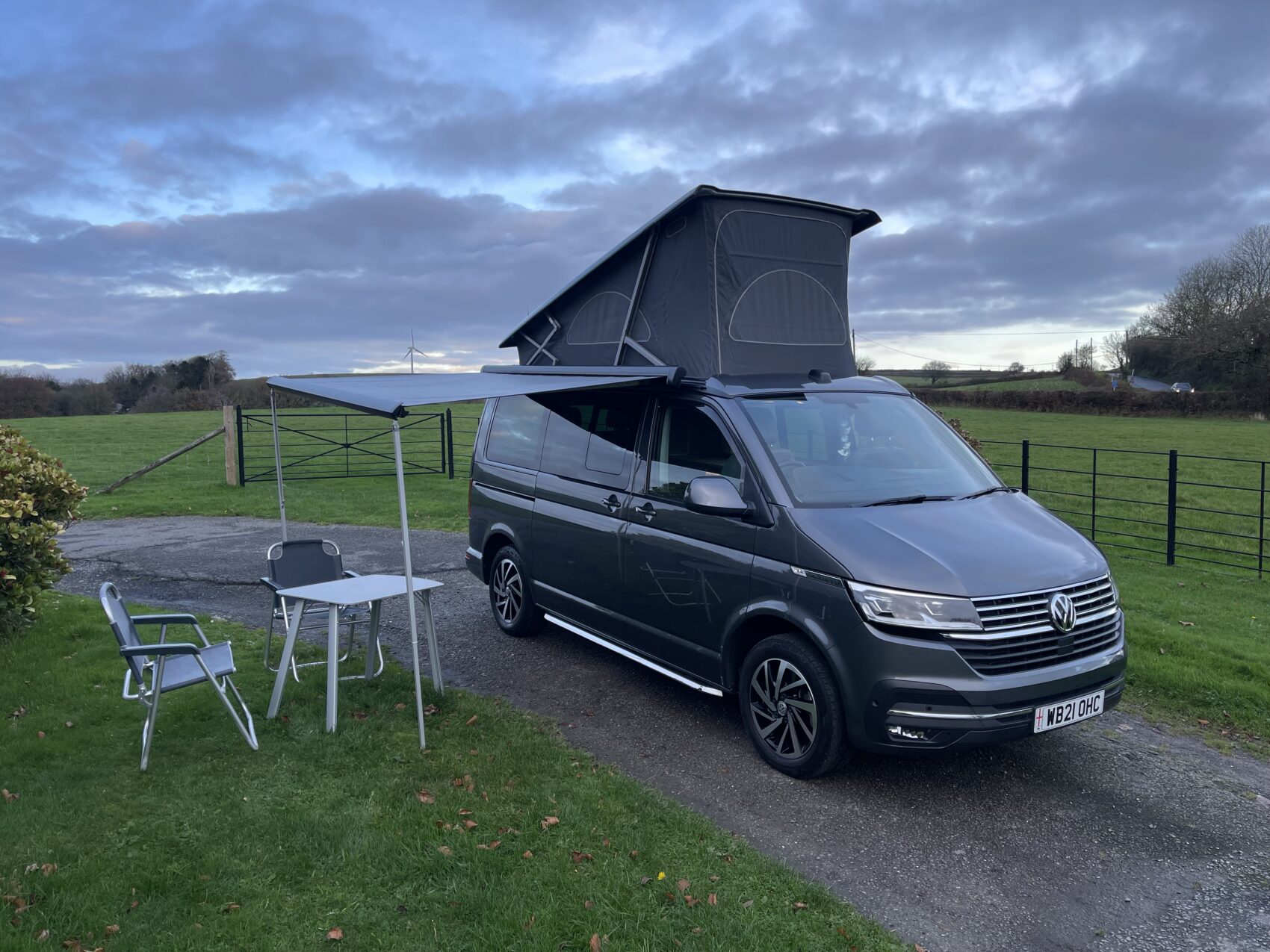 The wind-out awning, together with the freestanding table and chairs are also as new and have never been used.