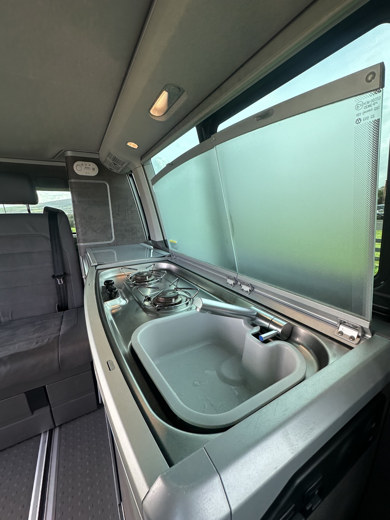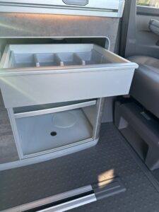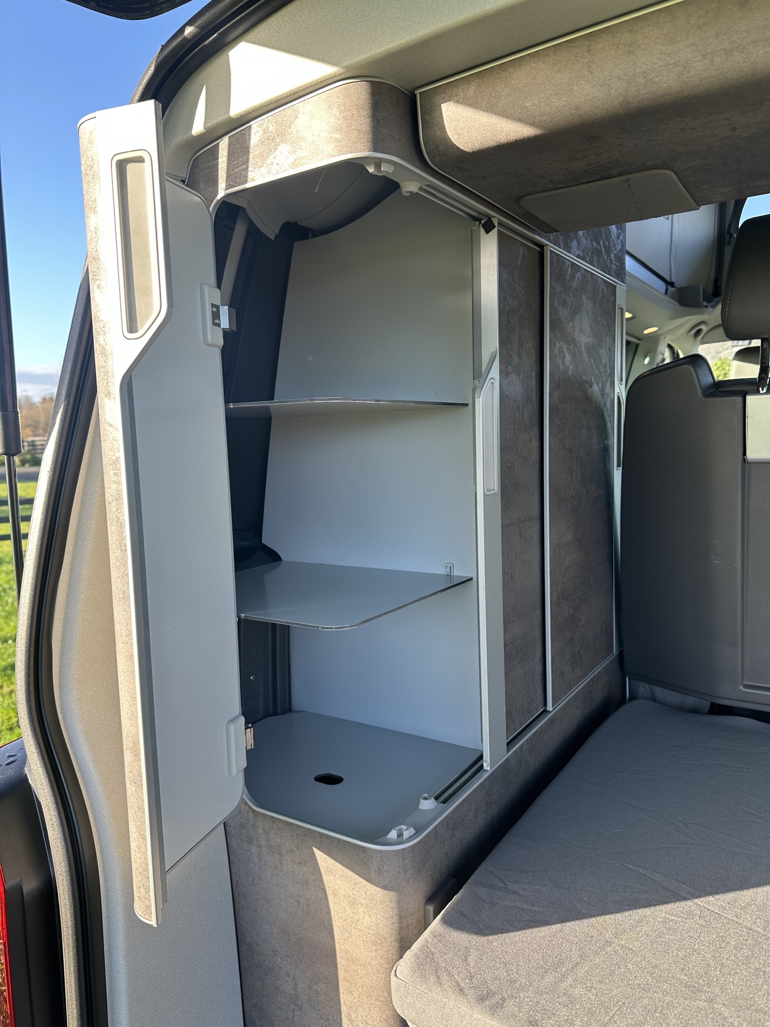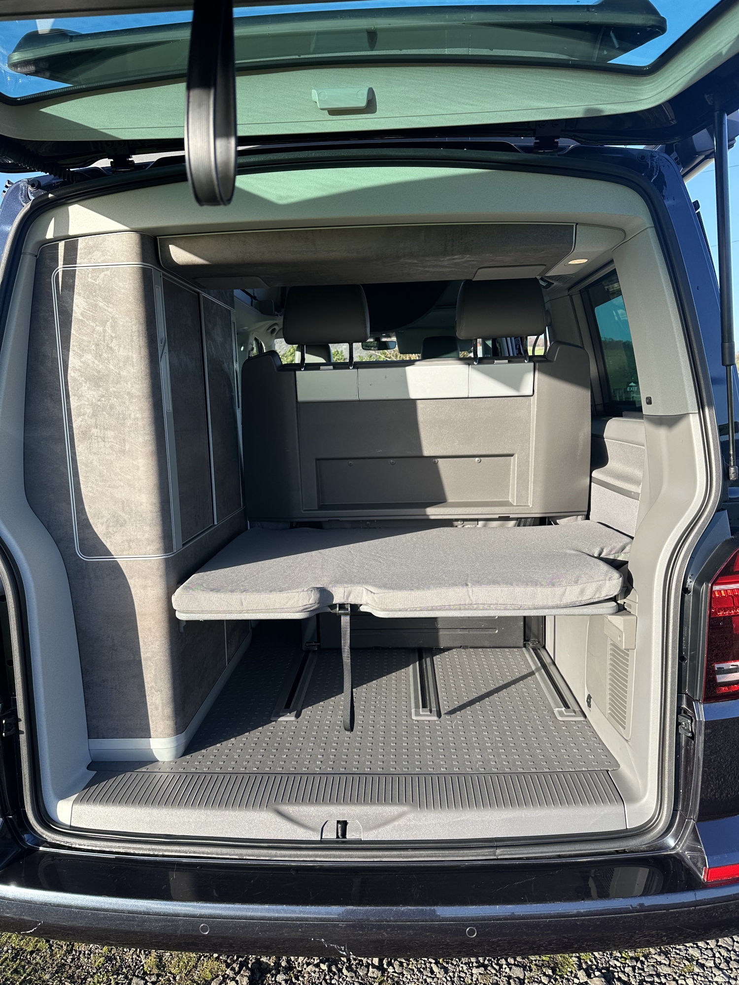 High specification VW T6.1 California Ocean in Starlight Blue with VW additional upgraded art velour seats and sat nav pro media plus full VW service history and manufacturers warranty to March 2027. Meticulously maintained, the worktops and shelves are as new with brand and brand new side magnetic blinds.