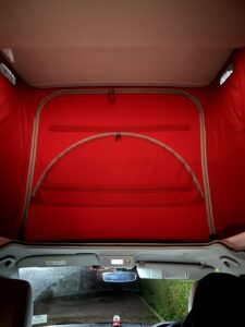 Electrohydr. operated pop-up roof, with 3 windows and 1 front aperture, canvas in Strawberry Red