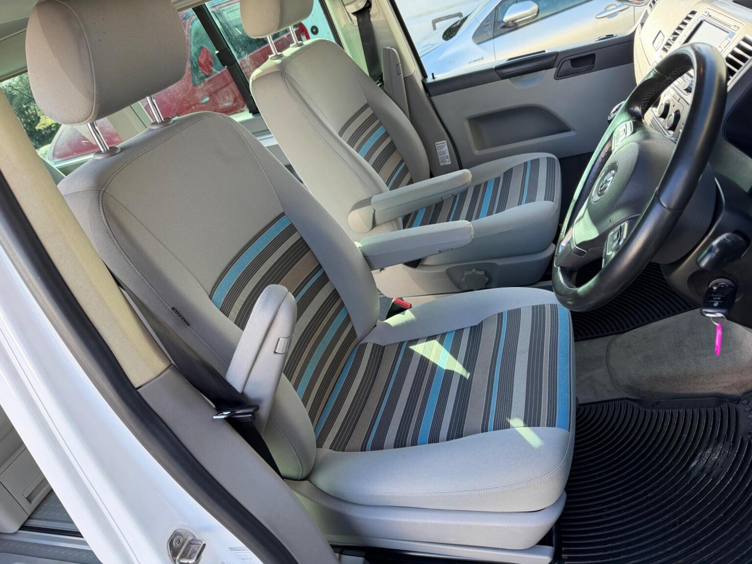 We are proud to offer this high spec and well cared for VW California Beach 5 seater, 140BHP manual Gearbox Just Had Recent New Clutch and Flywheel, Full service History x 10 Services with a new Genuine Cam Belt Kit and Water pump, Just fully serviced, Cruise Control, Sat Nav with Media Player, Multi Function Steering Wheel, Private Number Pate Included T555 CAL, Air Con, Pop Up Roof with double mattress on wooden slat base, Lower Double bed with comfort mattress, Additional Fridge, Shower and gas hob with Gas Bottles, Water Container, Pull Down black out blinds with Genuine Curtains for front, Electric Heated Mirrors, Front Fogs, Front and Rear Parking Sensors, Detachable Tow Bar, Stow away Table and Chairs, Leather / Suede Seat Covers included, Alloy Wheels, Stunning Vehicle, Drives Superb, Any inspection welcome, Please see over 70 photos plus a detailed walk around video on my website