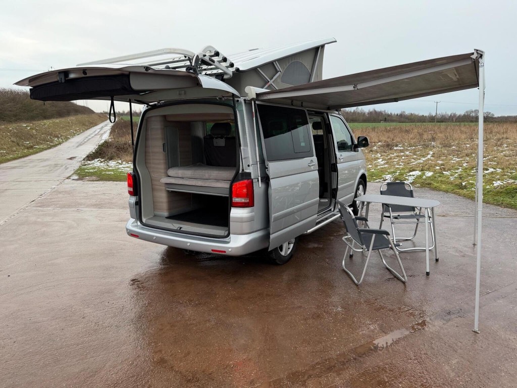 We are proud to offer this exceptional High Spec Well Serviced VW California SE 180BHP with waterproof SeatCovers, FSH to include a New Cam Belt Kit and WaterPump, Recent New Clutch and Dual Mass Flywheel approx 4000 miles ago, Just Fully Serviced by Ourselves using Genuine Filters and parts from TPS Listed Below, Blind Spot Overtaking Indictors, VW 4 Bike Rack, Comfort Mattress, Soft Close Side Door, 2x Remote Keys, Sat Nav / Media, Reverse Camera, Front And Rear Parking Sensors, Privacy rear glass, Wind Out Awning, 4 Seater with 4 Belts, Rotating Front Heated seats, Rear Safe with Keys, Cruise Control, Chrome Side Bars, Camper with GAS Hob and Sink with Clean Water plus waste storage, Fridge with Basket, Electric Pop Up Roof with Zip Out windows, Climate / Air Conditioning, Blow Air Diesel Heater, Isofix Seats, 150W Inverter, Fridge with Basket, Sink with Bowl, Cupboards with Cutlery draw, Wardrobe, Additional Storage, Pull out Table plus Additional Freestanding Table and Chairs, Electric Folding Heated Mirrors, Pull Down Blackout Blinds, Soft Close Rear Tailgate. Stunning Vehicle open to any inspection, Full Book Pack, Service History as Follows:- 13256m 10/2013, 23686m 10/2016 to inc Cam Belt, 28484m 07/2018, 30954m 10/2019, 37602m 04/2022, 45519m 03/2023, 52342m 04/2024, New Clutch and Dual Mass Flywheel at 55095m 09/2024, New Rear Coil Springs at 56772m 05/2025, Then Fully Serviced by Ourselves at 60000m 01/2026 to include a New Cam Belt Kit And Waterpump, all Genuine Parts Used with Receipts, 2 x Remote Keys with Water Keys and safe keys, Full Book Pack, Immaculate Condition finished in Silver Metallic, Please See Over 70 Pictures Plus a detailed walk around Video on my website, Other campers available, Part Exchange / Finance Welcome.
