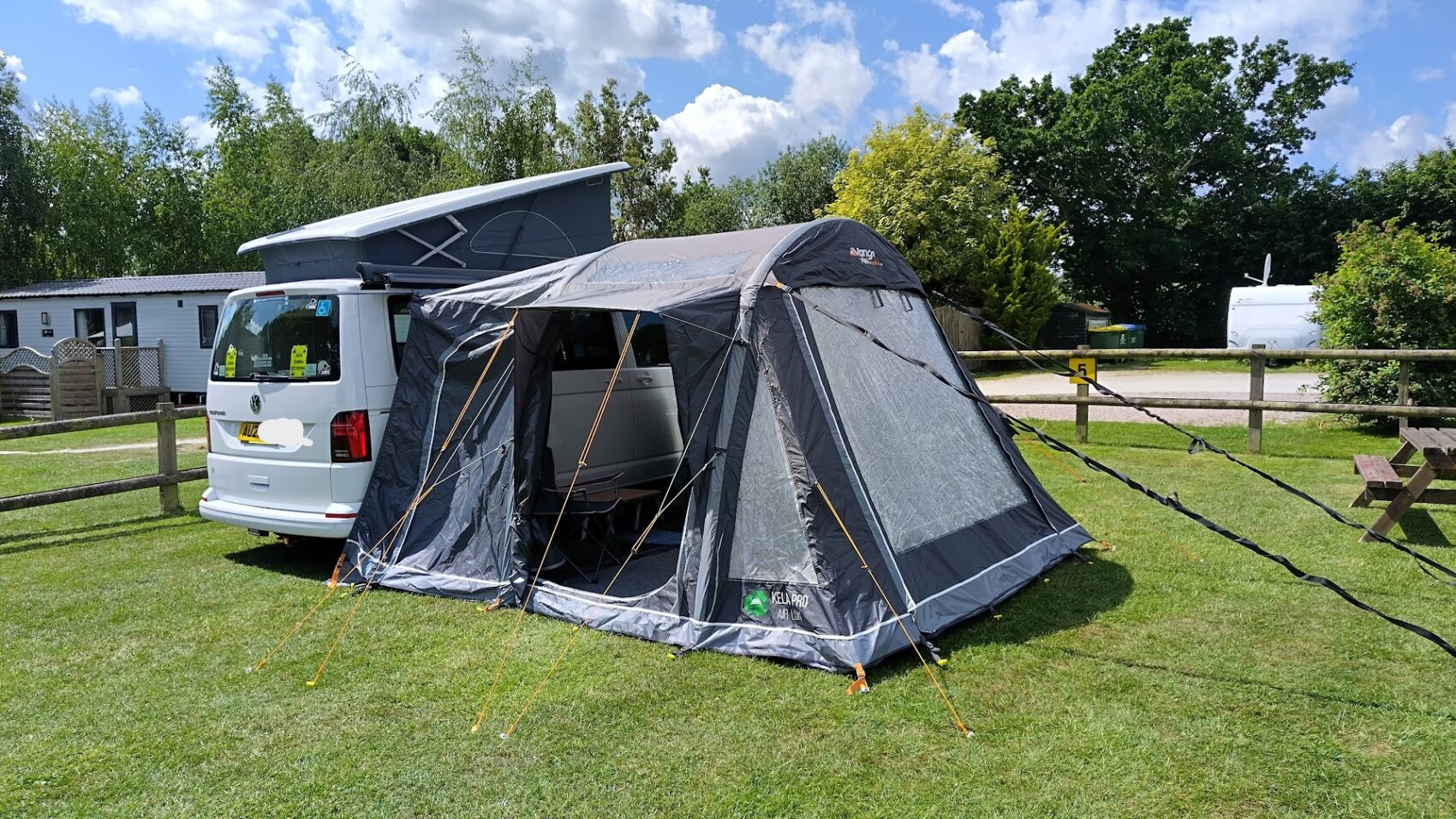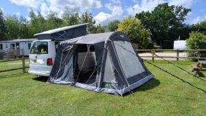 Vango Kela Air Drive Away Awning (only used for 4 nights From New), Vango Awning Carpet, Vango Foot Print (Stone Protector), Awning Drive Away Kit, Vango Electric Awning Pump, Vango Manual Awning Pump, 10mtr, & 25mtr Mains connector cables, Awning Mains Lead, Home to Campervan Mains Lead, Camping Gaz 907 Gas Bottle (Approx Half Full) Levelling Blocks,