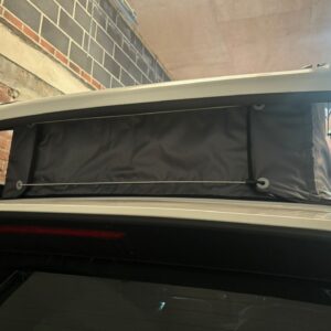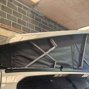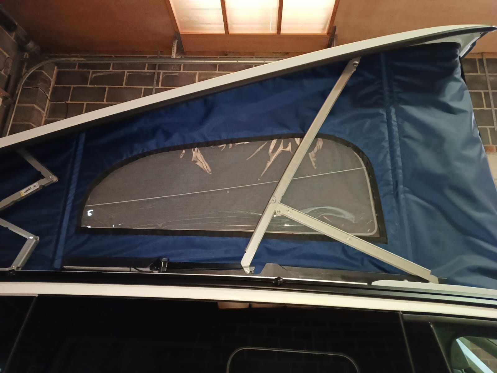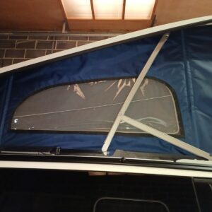 Fitting is a simple as wrapping the screen around the roof canvas of the California and fed behind the mechanisms and struts of the roof. The Cali-Wrap must be removed when lowering the roof and we have found that a small plastic stool (which can be kept in the tailgate with the chairs) helps with the fitting.