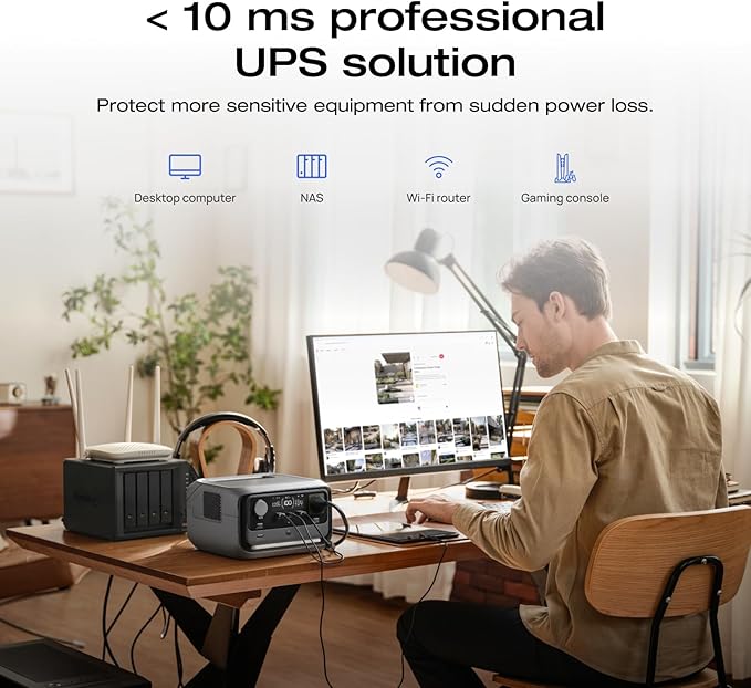 • Pro-grade UPS Protection: With a 10 ms auto-switch, RIVER 3 Plus secures sensitive devices from outages. LED, app, and software alerts keep you informed, while automatic data-saving protects PCs/NAS from low battery.
